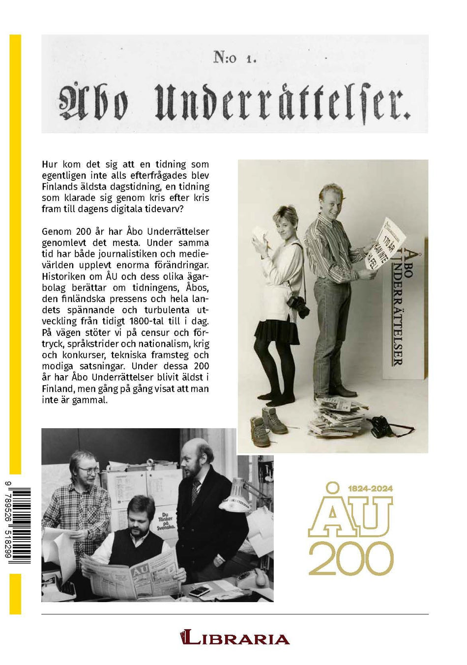 Historiken om ÅU och dess olika ägarbolag berättar om tidningens, Åbos, den finländska pressens och hela landets spännande och turbulenta utveckling från tidigt 1800-tal till i dag. På vägen stöter vi på censur och förtryck, språkstrider och nationalism, krig och konkurser, tekniska framsteg och modiga satsningar. Under dessa 200 år har Åbo Underrättelser blivit äldst i Finland, men gång på gång visat att man inte är gammal.