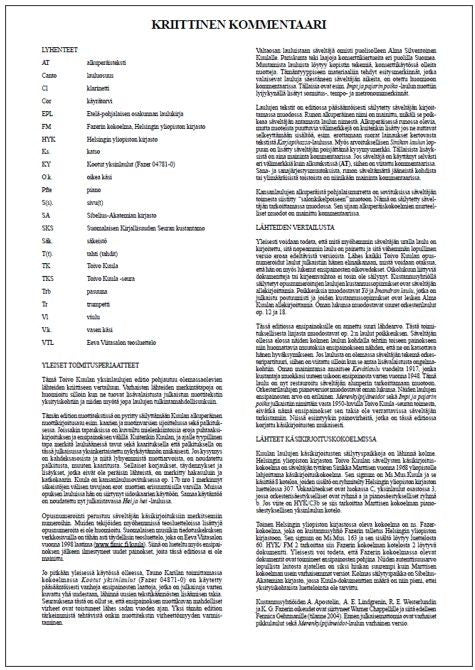 This extensive book includes all of Toivo Kuula's (1883-1918) songs for concert use and e.g. four previously unpublished songs. This critical edition includes commentaries by Gustav Djupsjöbacka, the editor of this collection.