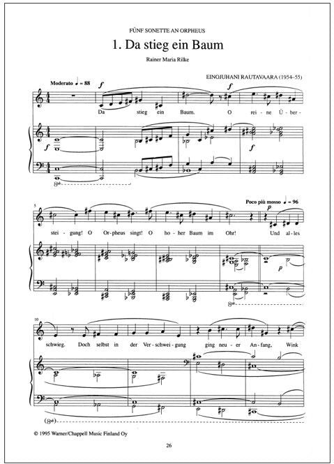 The vocal works of Einojuhani Rautavaara (1928-2016) were inspired by poets both Finnish and foreign, but above all Rainer Maria Rilke. Rautavaara has himself written the texts for some of his songs.