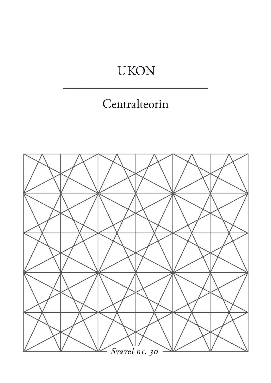 Svavel nr 30. I Centralteorin arbetar UKON med funna fraser, perspektivförskjutningar och upprepningar. Genom att öppna sig för verklighetens provokationer och skruva på slitna formuleringar och vardagliga banaliteter skapas absurd humor. Och sedan skruvar han ännu mer, ännu hårdare – tills det b... Lue lisää