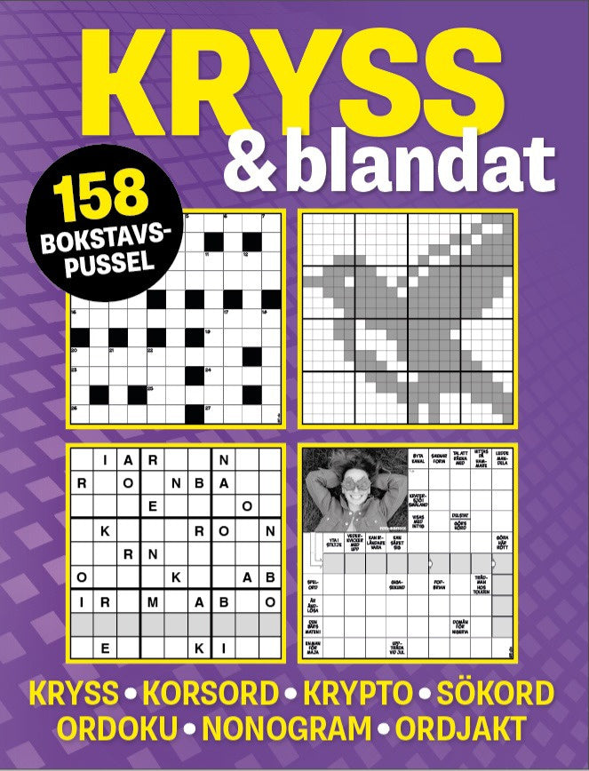 I Kryss & blandat finns alla möjliga – och omöjliga? – bokstavsutmaningar: korsord, kryss, ordjakt, ordoku, krypto och sökord. Och så finns nonogram, där man med logisk slutledningsförmåga bygger bilder. Totalt 158 utmaningar, med varierande svårighetsgrad. Skärp koncentrationsförmågan och dyk in i bokstävernas och de logiska tankarnas värld.
