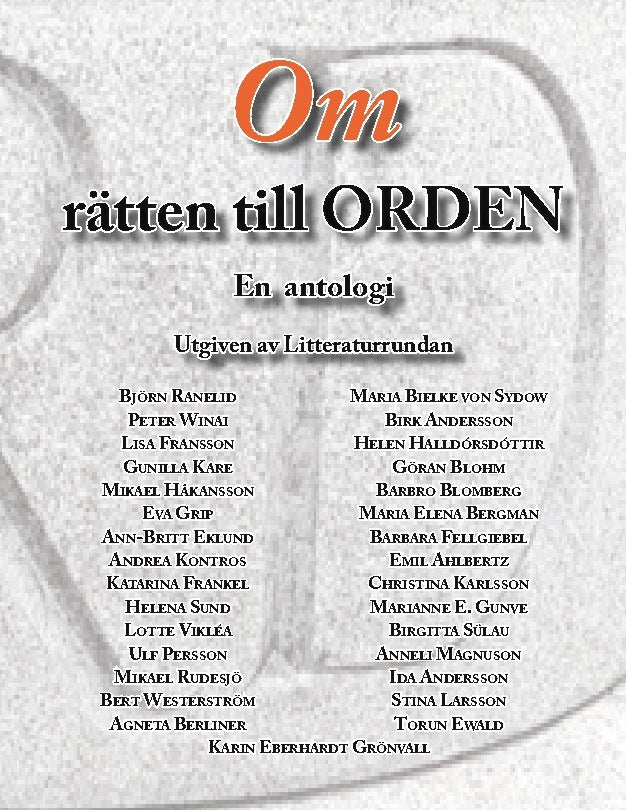 Debatten om rätten till ORDEN har sällan varit lika viktig i det svenska samhället och vi vill som förening bidra med denna bok, denna antologi med utmanande texter av 31 författare, medlemmar i Litteraturrundan.
