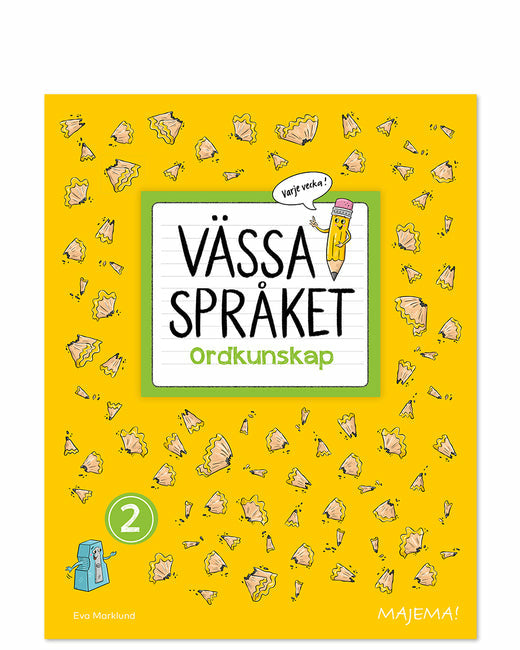 I Vässa språket ordkunskap 2 får eleverna arbeta med ca 120 ord. De aktuella orden för varje kapitel presenteras i en ordbank, fem ord per uppslag. Eleverna använder sedan orden i olika skrivövningar. I den fjärde och sista övningen på uppslaget, utgår eleverna från ett av orden och/eller ritar och skriver mer fritt. Vart femte uppslag i boken innehåller en repetition av de fyra föregående uppslagen.Där får eleverna använda alla ord en ytterligare gång. Se paketpris!