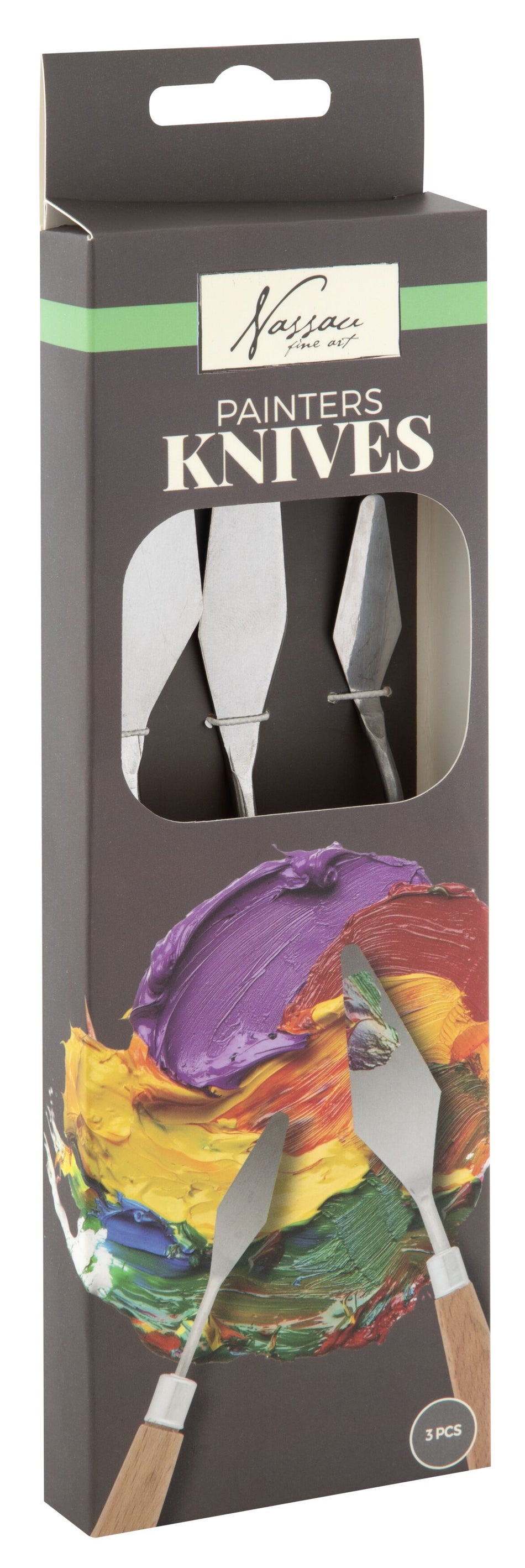Näppärät palettiveitset ovat käteviä apureita erilaisissa maalausprojekteissa! Näillä on hyvä sekoittaa värejä siveltimiä säästääkseen. Palettiveitsiä voit myös käyttää maalaamiseen sivellinten sijasta tai niiden kaverina, sekä erilaisten tekstuurimassojen kanssa taiteiluun. Paketissa on kolme eri kokoa, eli ne käyvät hyvin monenlaiseen!