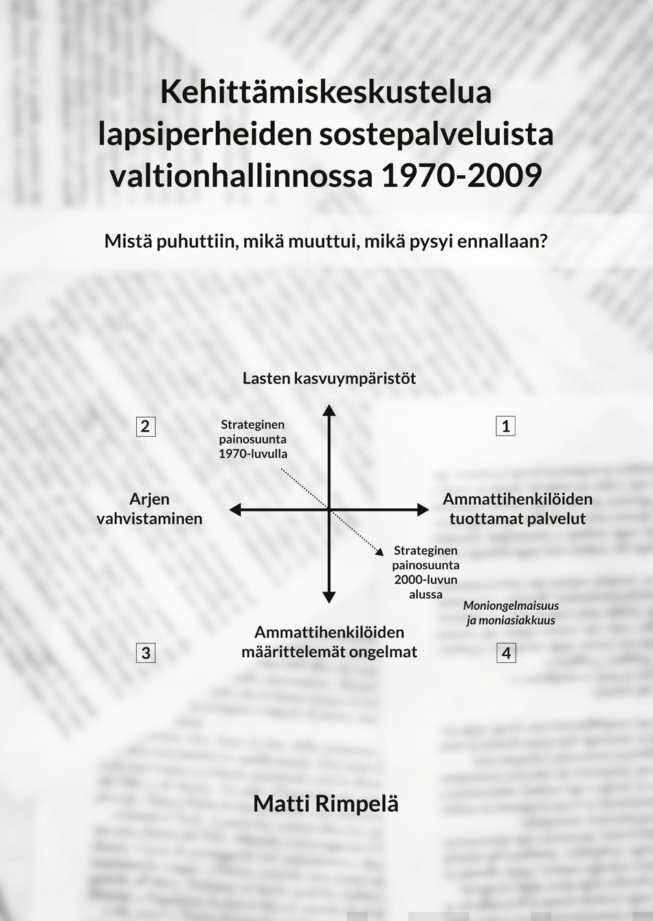 Kirjassa kuvataan keskustelua lapsiperheiden sosiaali- ja terveyspalveluista valtionhallinnossa 1970-luvulta vuoteen 2009. Yleiskuva oli pitkään myönteinen, kunnes se muuttui 1990-luvulla kriisipuheeksi. Selitykseksi esitettiin usein talouslamaa.