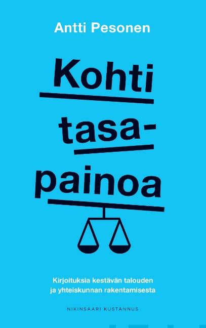 Kohti tasapainoa kiteyttää vuonna 2017 kuolleen Antti Pesosen yhteiskunnallista ajattelua, jolle on ominaista paitsi kritiikki eli asioiden kattava punnitseminen, myös vaihtoehtojen esittäminen.