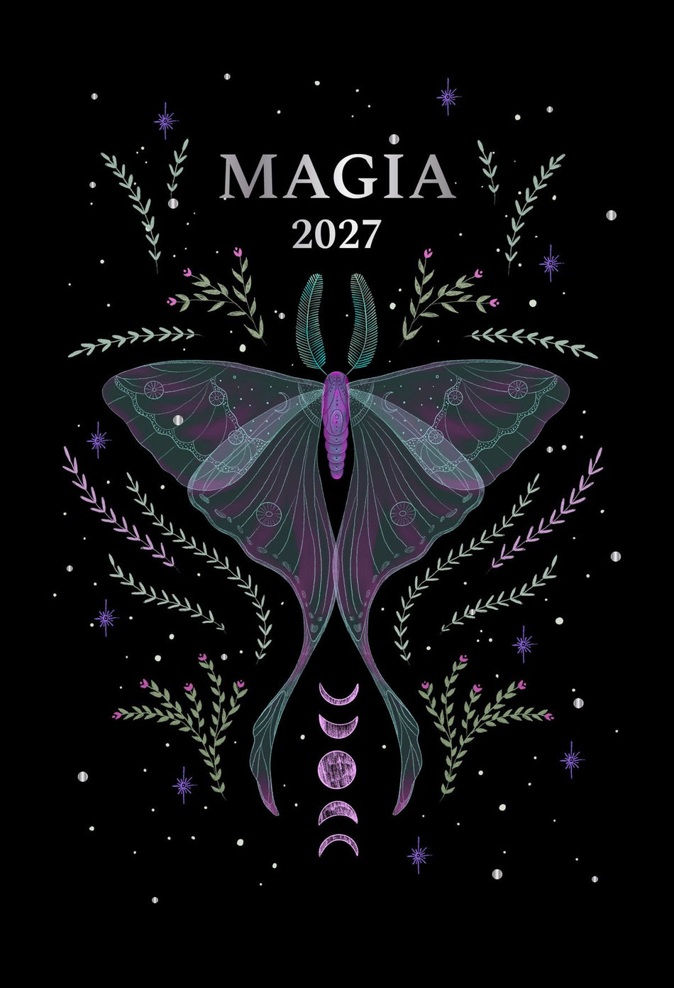 Kirjan muotoinen Magia 2027 tuo kauneutta maagiseen elämään. Joka kuukauden aloittaa vuodenaikaan liittyvä luonnonvoimainen rituaali. Aukeaman levyinen täytettävä viikkonäkymä kertoo kuun kierron vaikutuksesta ja näyttää täydenkuun sekä uudenkuun tähtimerkit ja kellonajat.