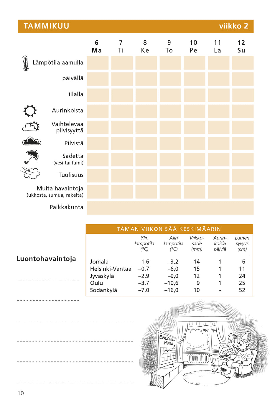 Oiva kirja säätä ja luontoa tarkkaileville. Talleta kirjaan omia säähavaintoja koko vuodenkierron ajalta muistoksi tulevia vuosia varten. Kirjassa on myös tilastoihin perustuvaa viikoittaista säätietoa kuluneiden vuosien ajalta. Lue lisää