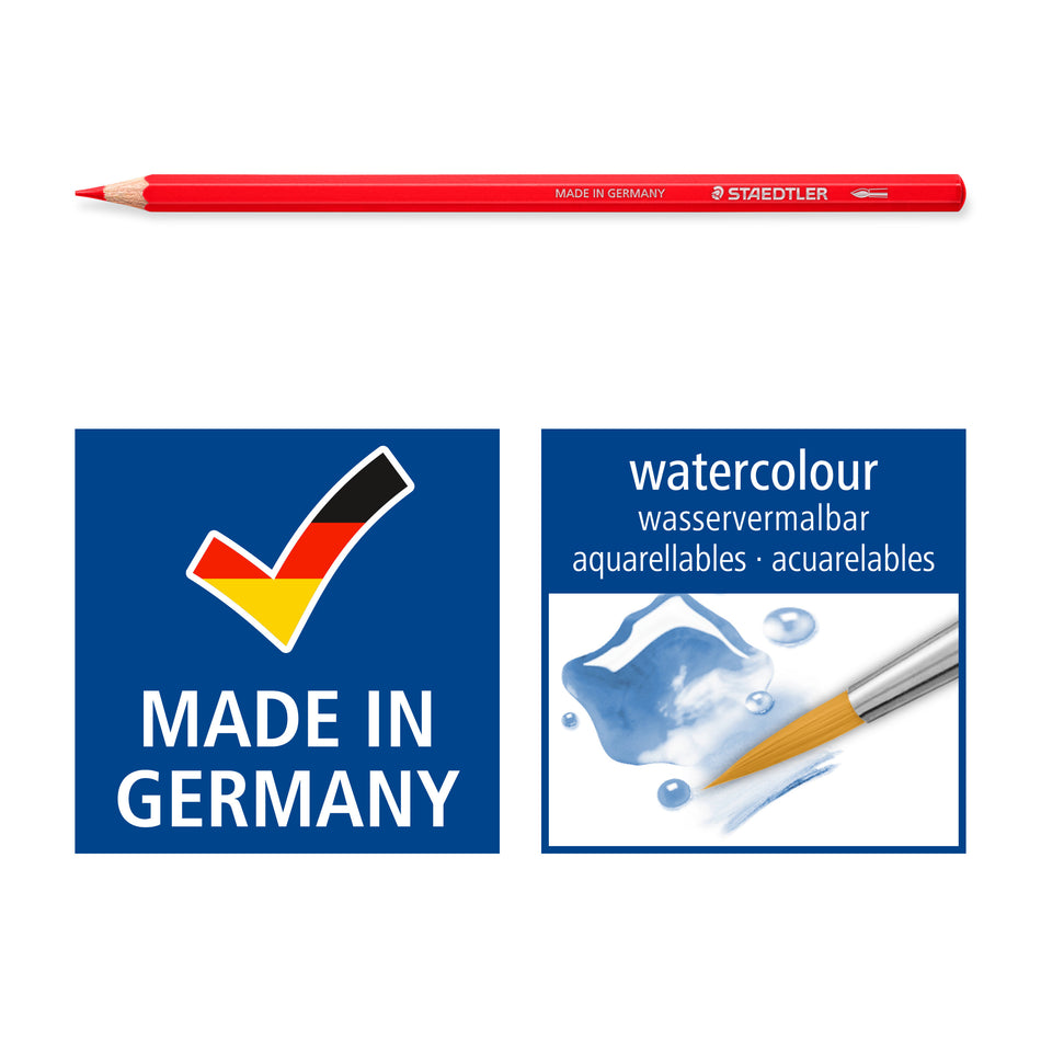 STAEDTLER® 146 10C 24 eri väristä vesivärikynä metallikotelossa. Korkealaatuinen värikynä klassisessa kuusikulmaisessa muodossa vesivärikynän lyijyllä. Pehmeä lyijy upeiden kirkkaiden tehosteiden tekemiseen vesiväripaperille vedellä ja siveltimellä. Sopii myös kuiviin tekniikoihin kirkkailla väre... Lue lisää