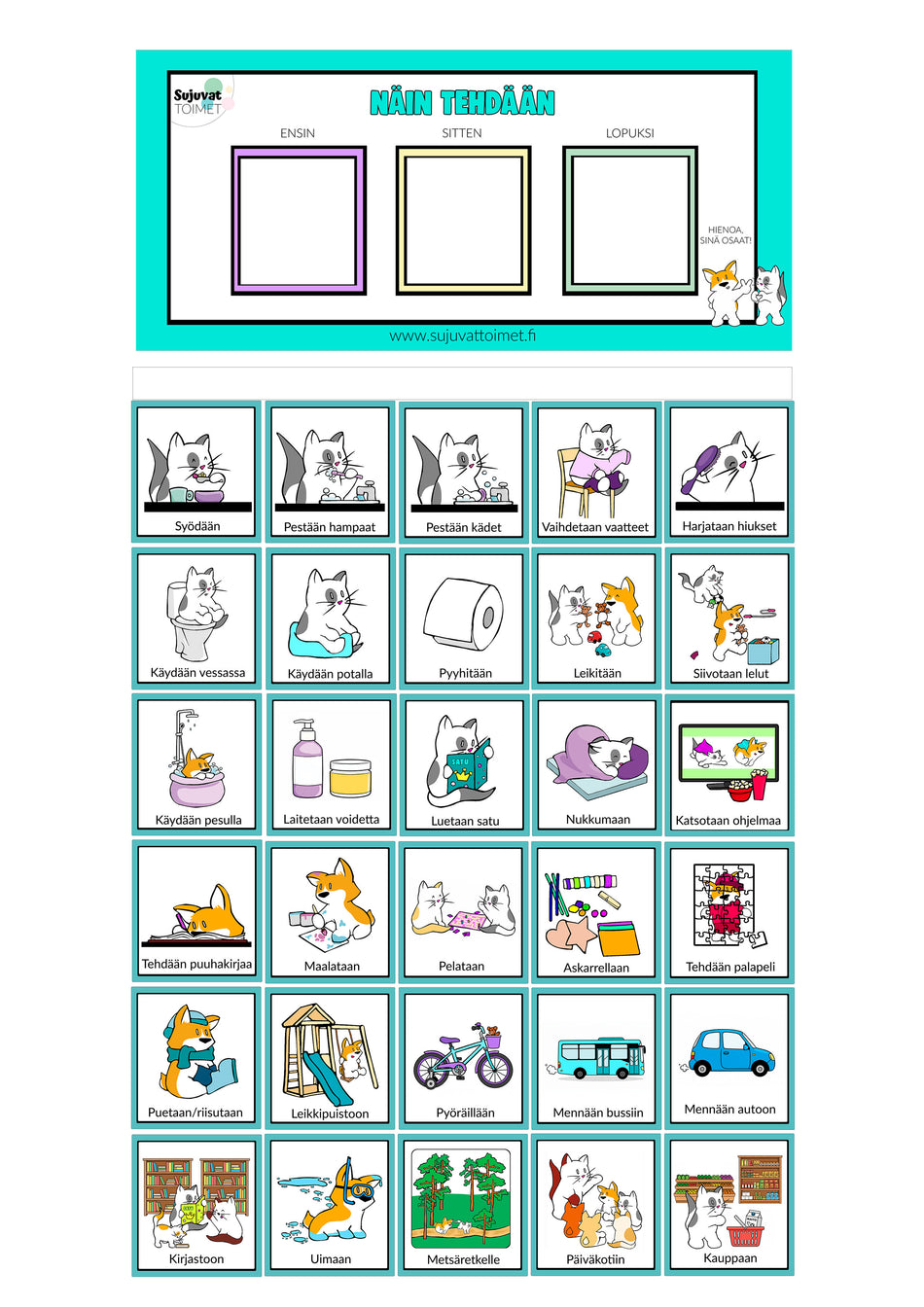 Kun lapsi näkee, mitä tapahtuu ensin, sitten ja lopuksi, arki muuttuu ennakoitavaksi ja kutsuu lapsen luontevasti mukaan toimimaan.