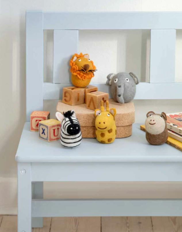 Tuo kotiisi ripaus Afrikan safarielämää tällä suloisella Huopakoriste safarieläimet setillä. Settiin kuuluu viisi eläintä (kirahvi, norsu, leijona, seepra ja apina), joiden korkeus on 8,5 cm ja leveys 6 cm. Nämä pehmoiset koristeet ovat täydellinen lisä lastenhuoneeseen tai lahja lapselle. Luo iloista tunnelmaa ja anna mielikuvituksen lentää näiden leikkisien eläinten avulla.