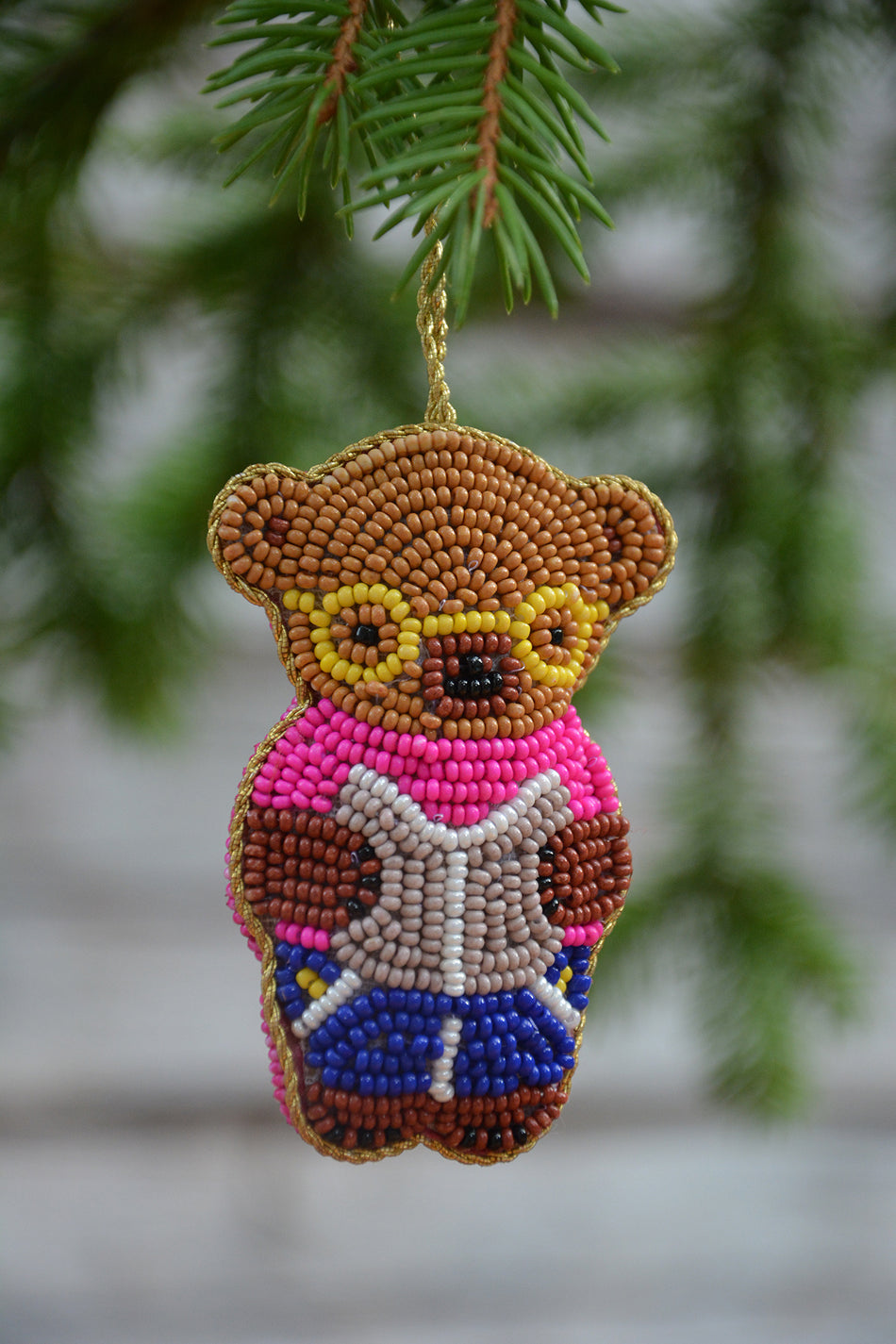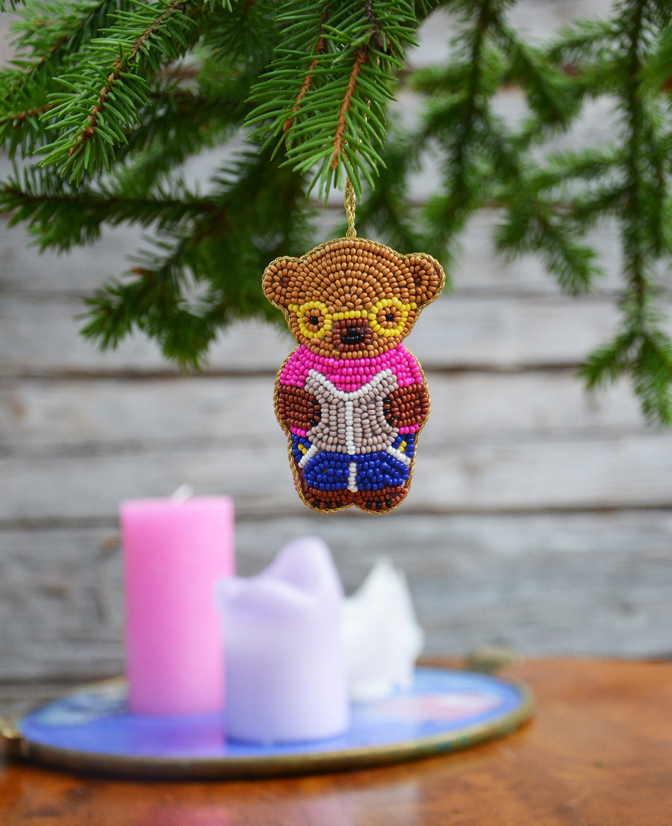 Lasihelmistä käsintehty ripustettava uniikki joulukoriste, jossa tekijän signeeraus Lue lisää