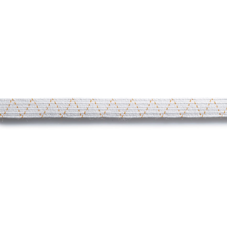 Monikäyttöinen punottu kuminauha esimerkiksi pyjamien ja housujen vyötärönauhaan. Kestää konepesun 95-asteessa sekä rumpukuivauksen. Tuotteella on Öko-tex.