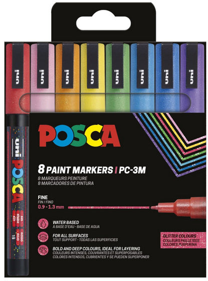 Maalikynä 8 kpl Posca 3M glittervärit