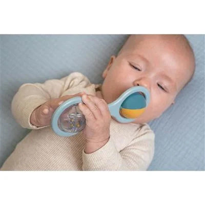 Little Dutchin pallohelistin, jossa ravistaessa toisessa päässä pienet pallot liikkuu ja helistimen toisessa päässä sinikeltainen pallo pyörii. Hauska helistin, joka sopii pieniin käsiin. 0+