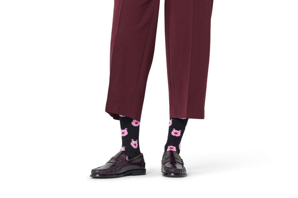 Valmistaudu röhkimään tyylillä mustissa pikselisissä possunaamasukissamme – hauska twisti klassisiin eläinsukkiin, joka saa taatusti hymyn huulille. Lue lisää