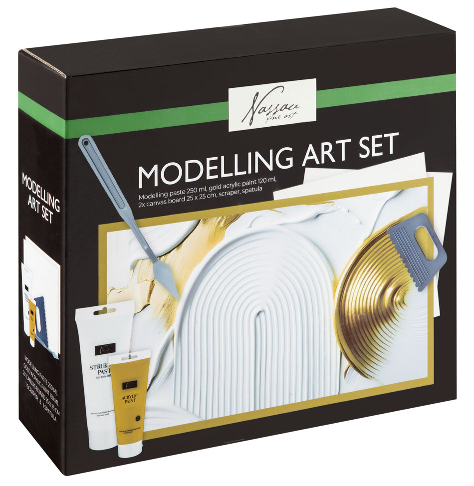 Pakkauksessa 250ml muotoilupastaa, 250ml kullanväristä akryylimaalia, 25x25cm kanvaslevy, kaavin ja lasta. Lue upea kolmiulotteinen taideteos tällä täydellisellä maalauspaketilla. Lue lisää