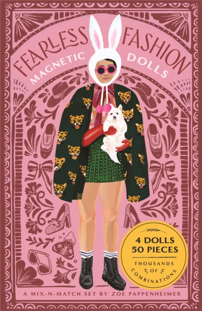 Housed in a delightful portable box, the set includes four dolls and forty-eight interchangeable outfit pieces. The stylish separates include artfully illustrated gorpcore jackets, botanical print robes, dapper suits, couture capelets, and more. Each daring ensemble fits all four dolls and can be paired with accessories—shoes, hats, wigs, purses, and pet dogs—to complete the look. Dress these dolls to express your funkiest fashion fantasies!