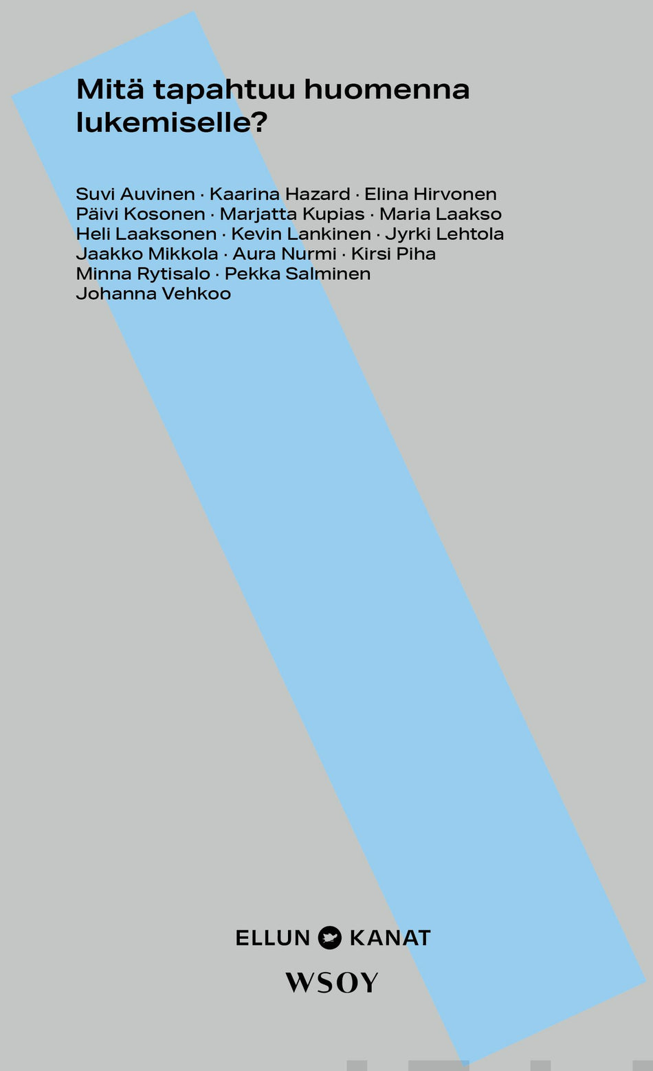 Mitä tapahtuu huomenna lukemiselle? kokoaa kannanottoja lukemisen harrastajilta ja ammattilaisilta, tutkimusta, kritiikkiä ja tulevaisuudennäkymiä. Kirjoittajat kutsuvat lukijan pohtimaan, mitä lukeminen merkitsee sellaisena kuin olemme sen oppineet ja sellaisena miksi se saattaa olla muotoutumassa.