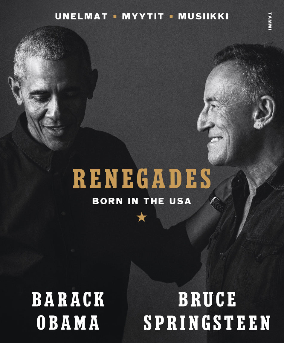 Renegades - Born in the USA on vilpitön, paljastava ja viihdyttävä presidentti Barack Obaman ja legendaarisen muusikko Bruce Springsteenin vuoropuhelu. Kirjassa kolutaan kaikkea heidän alkuperätarinoistaan ja uraa määrittävistä hetkistään Yhdysvaltojen polarisoituneeseen politiikkaan ja siihen, miten amerikkalainen unelma ja amerikkalainen todellisuus etääntyvät yhä kauemmaksi toisistaan. Runsaan kuvituksen ja harvinaisen arkistoaineiston täydentämä teos on vangitseva ja silmää hivelevä muotokuva kahdesta epäsovinnaisesta Yhdysvaltain lähihistorian merkkihenkilöstä, jotka miettivät keinoa yhdistää omakohtaiset merkityksen, identiteetin ja yhteisöllisyyden etsintänsä itse Amerikan tarinaan.