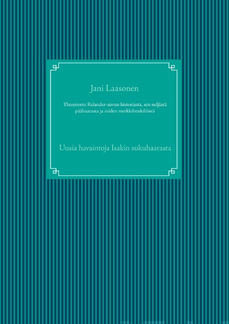 Tämä kirja on lyhyt johdatus Relander sukuun, sen historiaan ja merkkihenkilöihin. Aihetta lähestytään kirjailijan oman sukututkimuksen kautta.