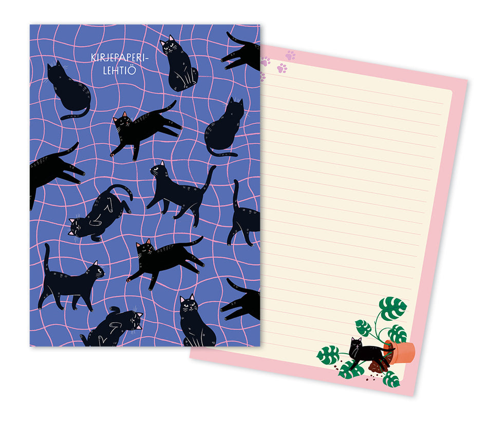 Suloinen A4-kokoinen kirjepaperilehtiö, jossa 20 viivoitettua ja kuvioitua irtirepäistävää arkkia. Vaaleankeltainen paperi, alakulmassa Helvi-kissa. Paperin vahvuus 100 g. Design: Kaisu Sandberg. Lue lisää