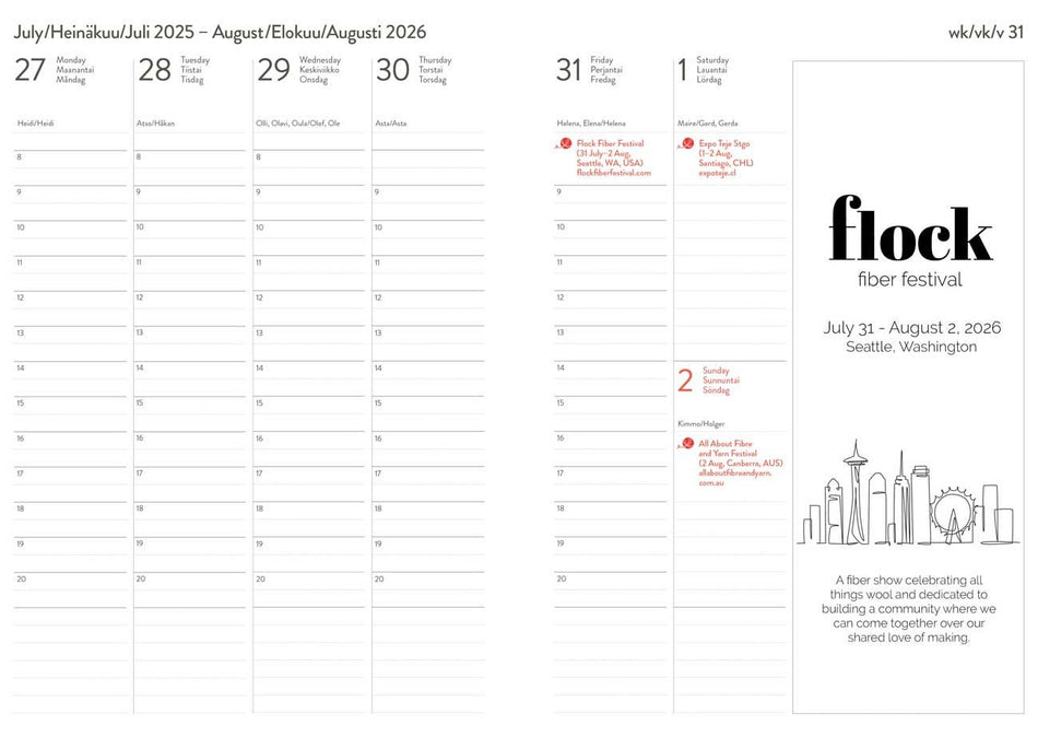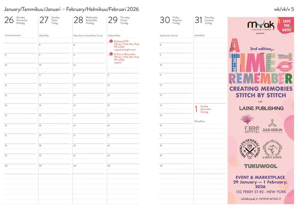 Neulojan vuosi 2026 on paljon muutakin kuin vainkaunis ja käytännöllinen vuosikalenteri. Siihen on merkattu valmiiksi yli 120 mielenkiintoista lankatapahtumaa ja -festivaalia niin Suomesta kuin ulkomailtakin, mikä tekee kalenterista erinomaisen työkalun paitsi harrastajalle, myös käsityöalan ammattilaiselle. Kalenterin avulla voit sekä organisoida omat menosi että olla osa inspiroivaa, maailmanlaajuista neuleyhteisöä!