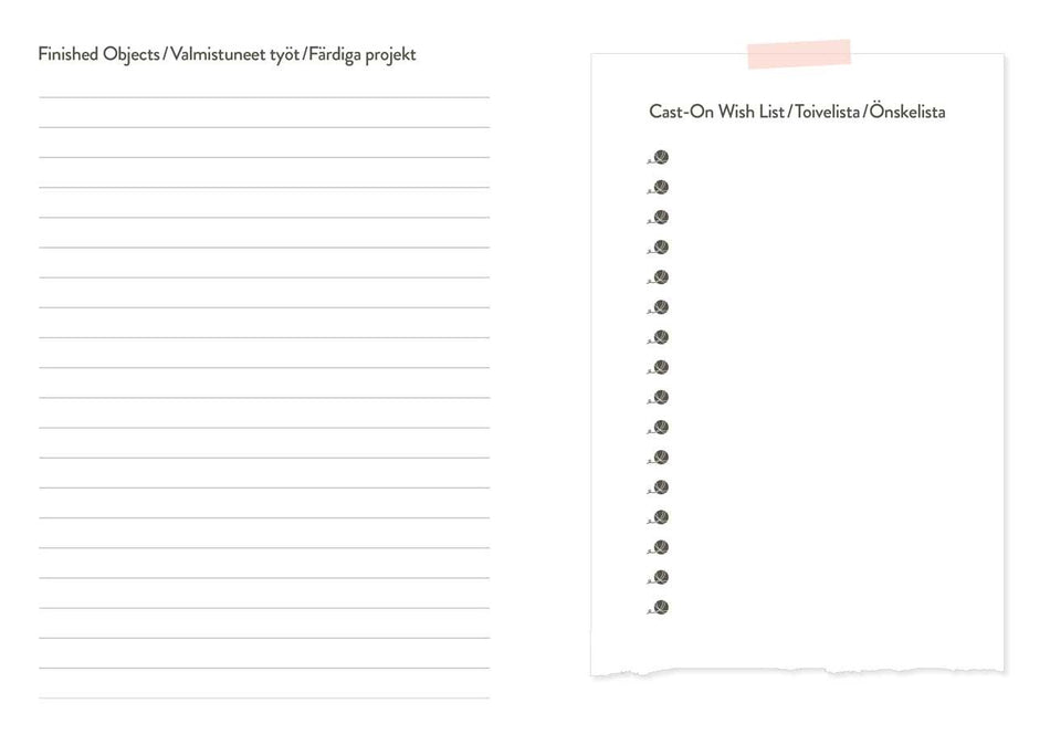 Lisäksi kalenteri sisältää muun muassa neulepuikkokokojen muuntotaulukon, eri lankavahvuuksien juoksevuudet, mittanauhan ja runsaasti tilaa omille muistiinpanoille.