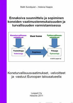 Tämä julkaisu käsittelee koneita koskevan tekniikan, kaupankäynnin ja juridiikan rajapintaa. Sen ytimessä on kysymys toimitusprojektin kohteena olevalle koneelle säädöksissä ja sopimuksissa asetettavista turvallisuusvaatimuksista. Näitä vaatimuksia on aikaisemmin tarkasteltu alan oppaissa toisistaan erillisinä. Tässä julkaisussa niitä tarkastellaan rinnakkain ja toisiinsa liittyvinä. Lisäksi tarkastelun kohteeksi otetaan toimituksen kohteelle tilaaja-toimittajasuhteessa asetettavat vaatimukset silloin, kun niistä ei ole nimenomaisesti sovittu. Julkaisun tavoitteena on auttaa toimitusprojektien osapuolia tunnistamaan potentiaaliset ongelmat ja ratkaisemaan ne ajoissa. Tarkoituksena on auttaa tilaajia ja toimittajia tiedostamaan ja jakamaan säädösten ja sopimusten velvoitteet keskenään siten, että kaikki osalliset saavuttavat kannattavuus- ja muut tavoitteensa ja välttyvät vahingoilta ja menetyksiltä.