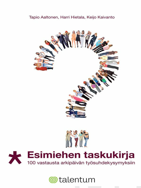 Esimiehen taskukirja - 100 vastausta arkipäivän työsuhdekysymyksiin on käytännöllinen pikaopas kaikille esimiehille. Kirjassa annetaan vastaukset sataan yleiseen kysymykseen ja tilanteeseen, jotka vaativat esimiehiltä nopeaa reagointia arjen työelämässä. Vastauksissa otetaan huomioon sekä työoikeudelliset että HR:n näkökulmat, mutta ratkaisu on aina yksi käytännönläheinen kokonaisvastaus.