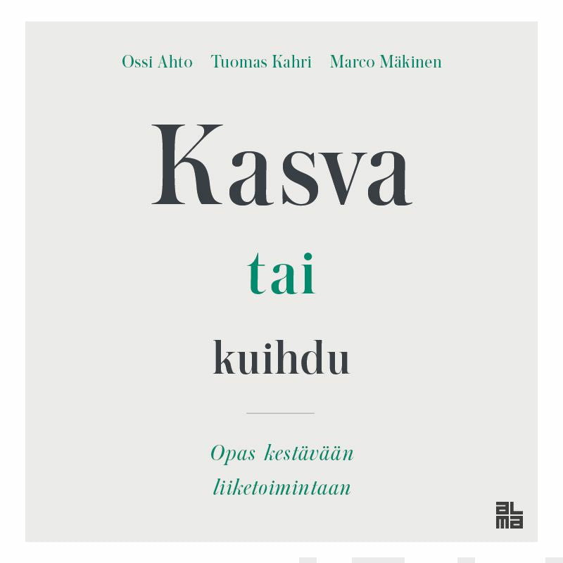Kasva tai kuihdu - on vain nämä kaksi vaihtoehtoa. Kirjaan on koottu parhaat opit siitä, miten yrityksiä voi kasvattaa niin, että kasvu on jatkuvaa ja kestävällä pohjalla.