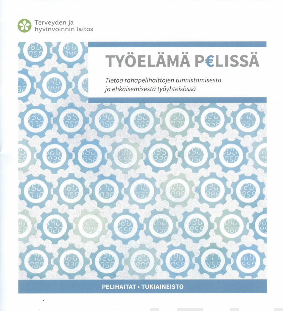 Työelämä pelissä -tukiaineisto on työväline rahapelihaittojen ehkäisemisen suunnitteluun ja toteuttamiseen työyhteisössä. Se on tarkoitettu työpaikoille esimerkiksi työsuojelun, luottamusmiesten, henkilöstöhallinnon esihenkilöiden sekä johtajien käyttöön. Tukiaineistossa selvennetään myös työyhteisön toimijoiden erilaisia rooleja rahapelihaittojen ehkäisemisessä sekä vastuullisen työpaikkakulttuurin edistämisessä.