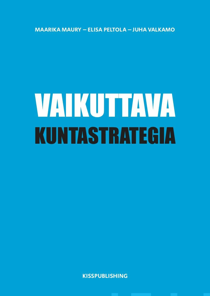 Vaikuttava kuntastrategia -kirja on opas uuden ajan strategiatyöhön. Kirjamme tarkoituksena on toimia kokonaisvaltaisena työkalupakkina ja ajattelun avartajana kuntien strategiatyössä ja kuntakehittämisessä. Kirja herättelee ajattelemaan asioita uudella tavalla ja antaa eväitä tulevalle strategiakaudelle, jotta strategioista saataisiin mahdollisimman toimivia ja innostavia ohjenuoria kaikenkokoisille yhteisöille. Strategiat eivät kuitenkaan aina perusteellisestakaan työstä huolimatta onnistu. Kirja kertoo tutkimustietoa siitä, missä ovat suurimmat kompastuskivet ja miten luoda vaikuttava ja tuottava strategia. Kirja on käytännöllinen, helposti luettava, ymmärrettävä ja oivalluttava. Kuntastrategiaoppaan tavoitteena on tehdä kuntien ja kaupunkien strategiatyö paitsi helpommaksi, mutta ennen kaikkea tuloksellisemmaksi ja vaikuttavammaks