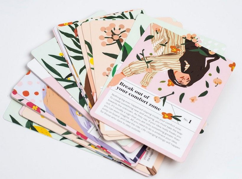 Pakkaus sisältää 32 englanninkielistä korttia, joissa on inspiroiva teksti ja voimaannuttava kuva. 11 cm x 15 cm kokoiset kortit on tulostettu ympäristöystävälliselle paperille ja ne on pakattu kauniiseen kaksiosaiseen laatikkoon. Ihana lahjaidea modernille bisnesnaiselle!