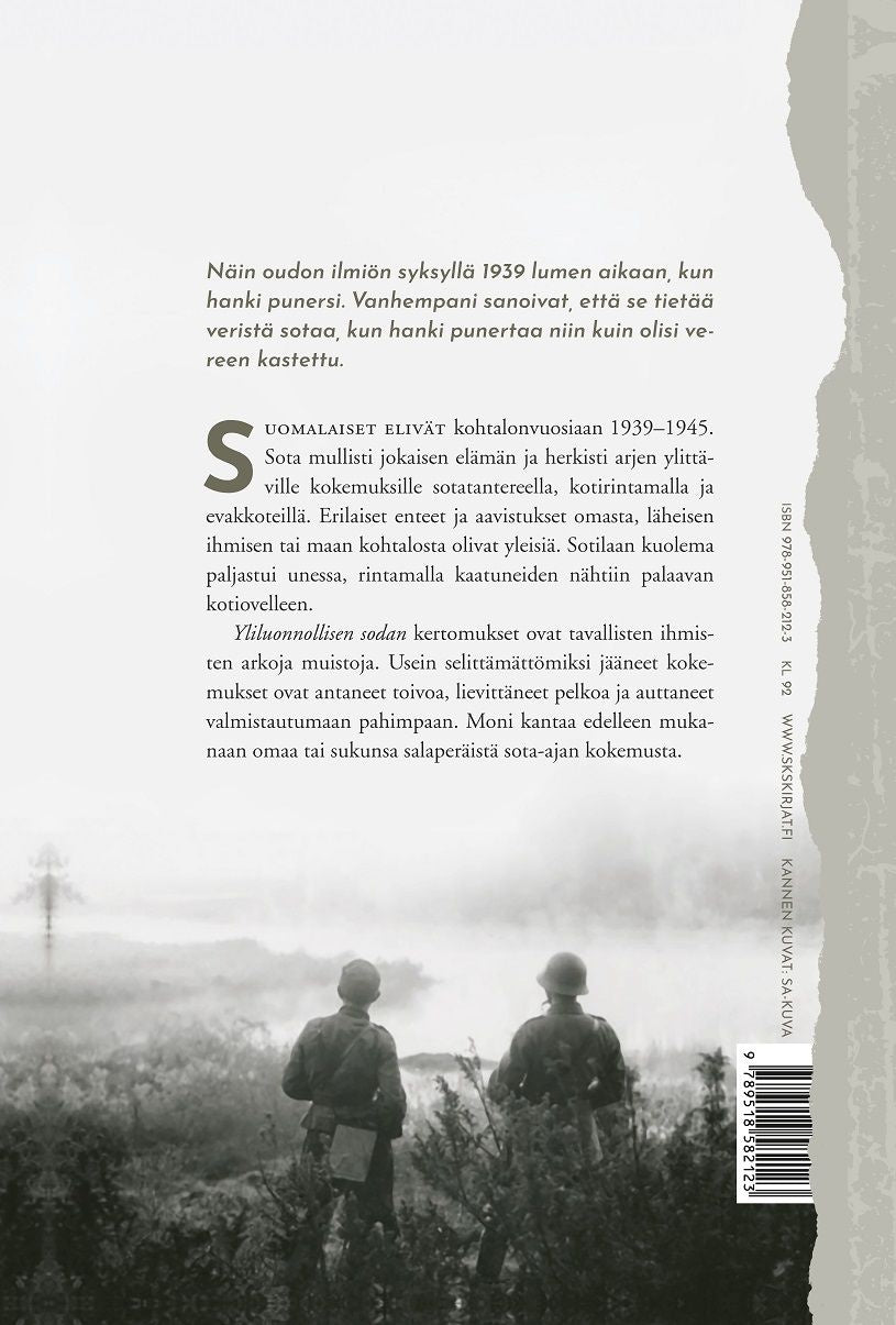 Yliluonnollisen sodan kertomukset ovat tavallisten ihmisten arkoja muistoja. Selittämättömiksi jääneet kokemukset ovat antaneet toivoa, lievittäneet pelkoa ja auttaneet valmistautumaan pahimpaan. Moni kantaa edelleen mukanaan omaa tai sukunsa salaperäistä sota-ajan kokemusta.