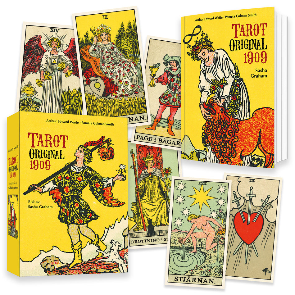 Välkommen till Tarot Original 1909 av Arthur Edward Waite och Pamela Colman Smith. Detta är 1900-talets mest välkända tarotlek och den första som massproducerades. Den här utgåvan har återgivits så som leken först gavs ut i december 1909. Boxen inkluderar en bok i fyrfärg av tarotexperten Sasha Graham som tolkar bildernas andliga och psykologiska innebörd utifrån Waites ursprungliga förklaringar.Ockultisten Arthur Edward Waite och konstnären Pamela Colman Smith tillhörde på slutet av 1800-talet och början av 1900-talet det esoteriska sällskapet The Hermetic Order of the Golden Dawn där tarot ingick i de andliga aktiviteterna. Symboliken och de ockulta influenserna i tarotleken från 1909 är inspirerade av Frimurarorden, alkemi, Rosenkreuzarna, egyptisk ikonografi, den hebreiska kabbalan, livets träd, kristen symbolik och äldre, historiska tarotlekar. Waite och Smiths tarotlek anses ha lagt grunden för modern tarot och har gett inspiration till de flesta av vår tids tarotskapare. Utifrån Smiths lättillgängliga bilder och Waites pedagogiska förklaringar blev kunskapen om tarot för första gången öppet tillgänglig och det blev möjligt för alla att ägna sig åt intuitiv kortläsning. BOXEN INNEHÅLLER: Kortlek med 78 tarotkort i fyrfärg, storlek 66x120 mm och tillhörande häfte Bok (mjukband, 200 sidor) i fyrfärg med bilder på korten och förklaringar till varje kort