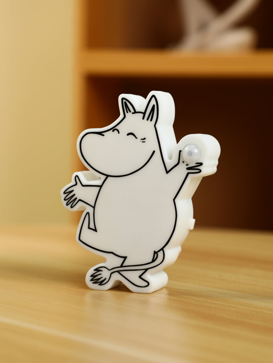 Iloinen Muumipeikko valaisee pimeällä liikkumisen. Valossa on myös päällä-toiminto, eli voit valita toimiiko valo liiketunnistimella vai onko se jatkuvasti päällä. Valaisimen voi ladata, mukana tulee USB-C-kaapeli. Lue lisää