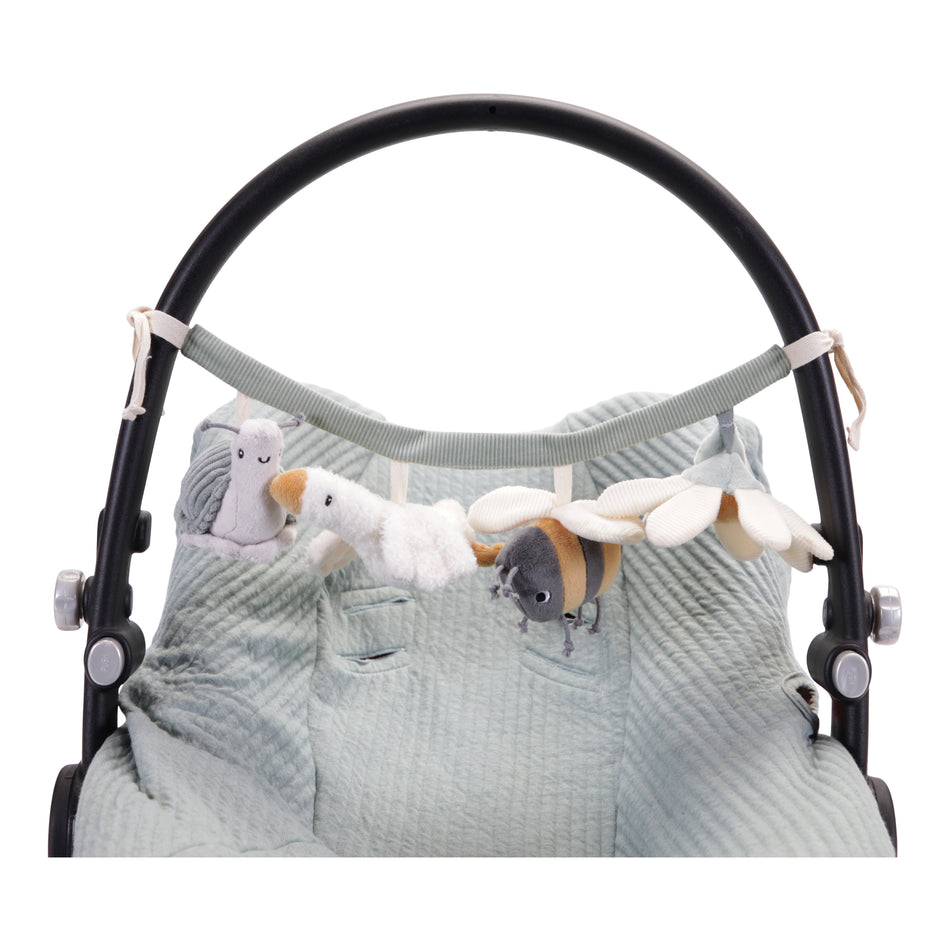 Pehmeä ja suloinen Pikku Hanhi vaunuhelistin neljällä hahmolla. Etana,jossa peili, pikku hanhi helistin,vinkuva mehiläinen ja rapiseva kukka. Lue lisää