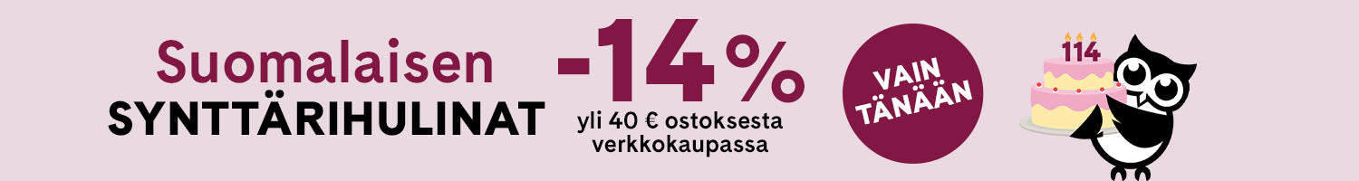 114-vuotiaan Suomalaisen kunniaksi saat nyt 14 % alennusta, kun ostat 40 eurolla!*