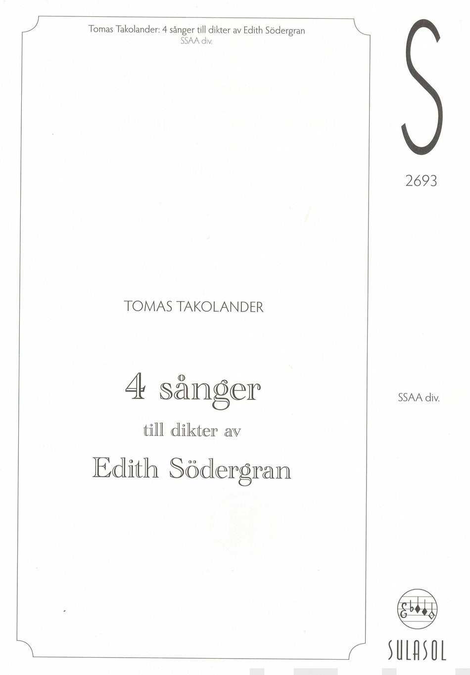 4 sånger till dikter av Edith Södergran