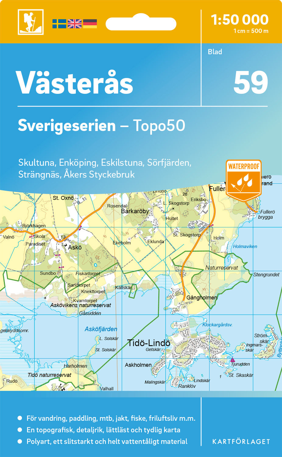 Sverigeserien är en kvalitetskarta som är gjord för att användas! Aktuellt kartdata är hämtat från Lantmäteriet och den är tryckt på Polyart som är helt vattentåligt och slitstarkt. Det mjuka materialet tål att vikas om och om igen. Den klarar både vinterns och sommarens ibland utmanande väder i Sverige. Kartorna har en utförlig teckenförklaring på svenska, engelska och tyska.