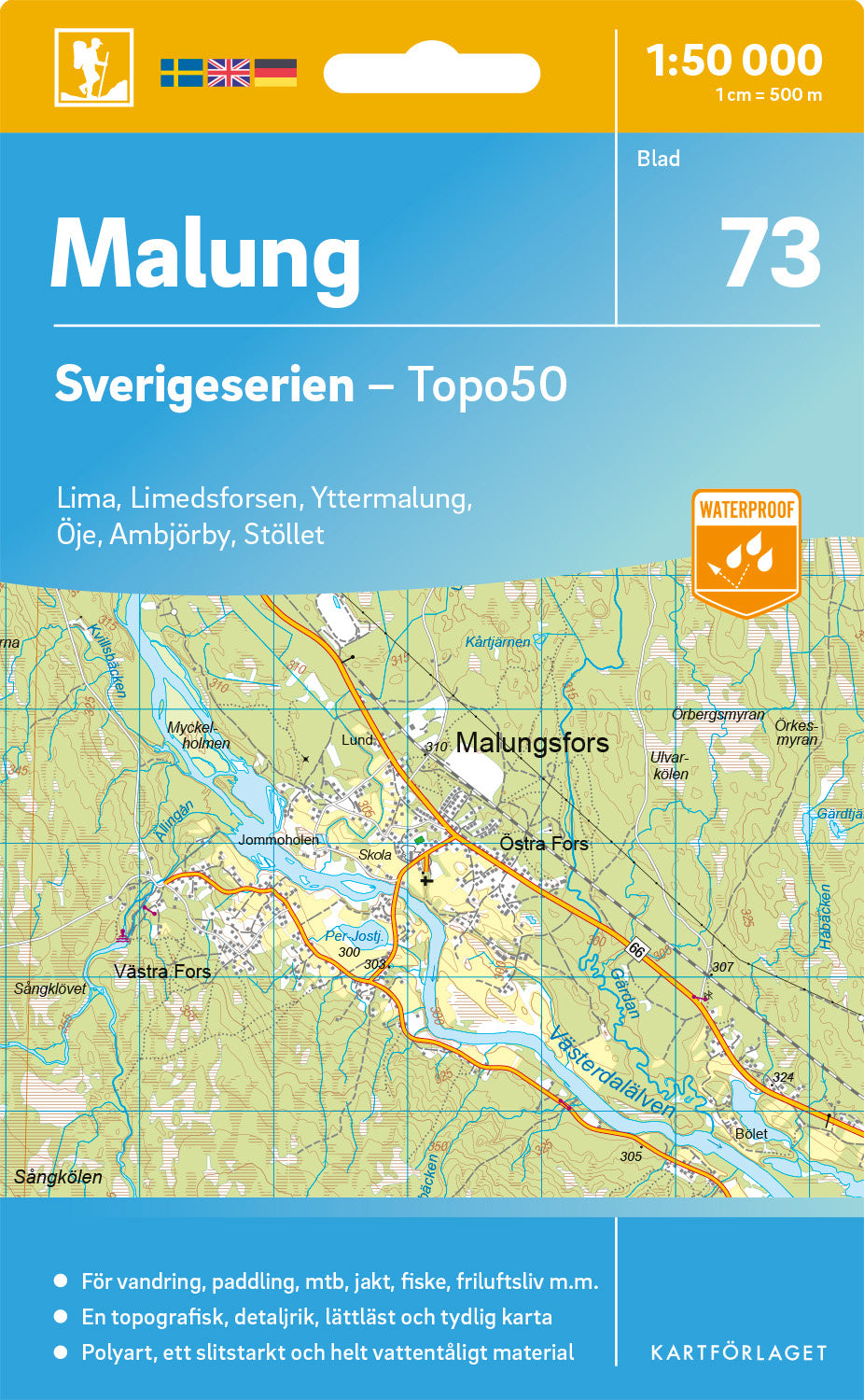 Sverigeserien är en kvalitetskarta som är gjord för att användas! Aktuellt kartdata är hämtat från Lantmäteriet och den är tryckt på Polyart som är helt vattentåligt och slitstarkt. Det mjuka materialet tål att vikas om och om igen. Den klarar både vinterns och sommarens ibland utmanande väder i Sverige. Kartorna har en utförlig teckenförklaring på svenska, engelska och tyska.