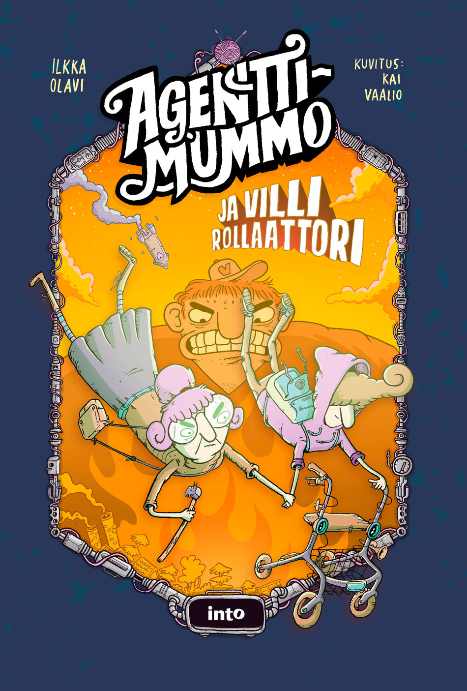 Ilkka Olavin riemastuttavassa Agenttimummo ja villi rollaattori -kirjassa kohdataan karkailevia konnia ja kummallisia koneita.