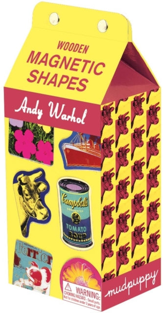 Mudpuppy Andy Warhol magnetic shape sets are lots of fun for kids or for Andy Warhol fans. Each colorful wooden magnet—from flowers and cows through soup can— is based on an Andy Warhol workk and was created in conjunction with the Andy Warhol Foundation for the Visual Arts, Inc. Lue lisää