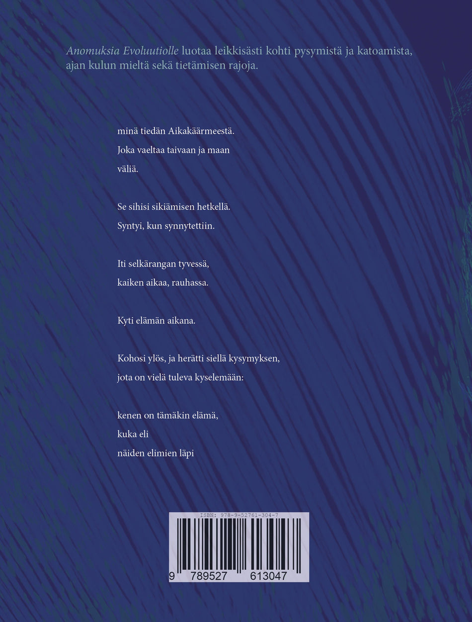 Ilona Vuoren esikoisrunoteos käsittelee ajan ilmiasuja, pysyvyyden ja katoavuuden suhdetta, merkityksiä, joita ajan kulumiselle annamme sekä tiedon rajoja.