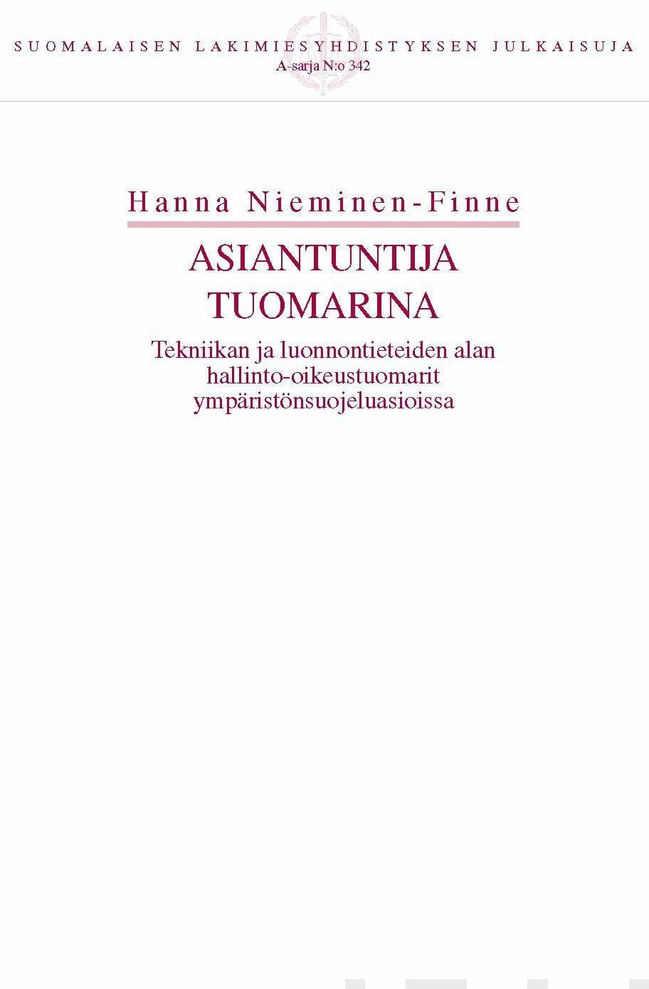 ympäristönsuojeluasioissa. Tarkastelun kohteena ovat asiantuntijatuomarin rooli, tehtävät ja toimintaympäristö sekä asiantuntijatuomarin kansallinen, EU-oikeudellinen ja kansainvälinen normipohja. Mihin asiantuntijatuomaria