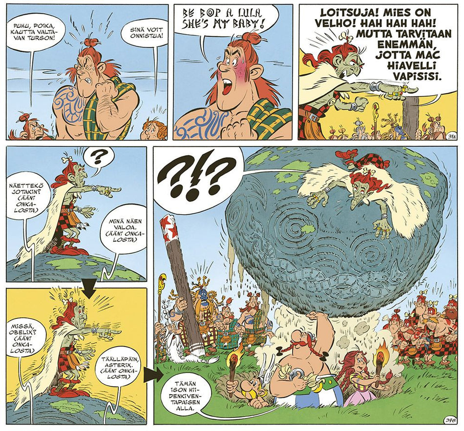Tämän albumin myötä Jean-Yves Ferri ja Didier Conrad ottivat harteilleen Asterixin seikkailujen jatkamisen, eli kyseessä oli Albert Uderzon itsensä valitseman uuden tekijätiimin tulikaste. Asterix ja Obelix pelastavat piktinuorukaisen ja saavat tehtäväkseen tämän saattamisen kotiinsa Skotlantiin,... Lue lisää