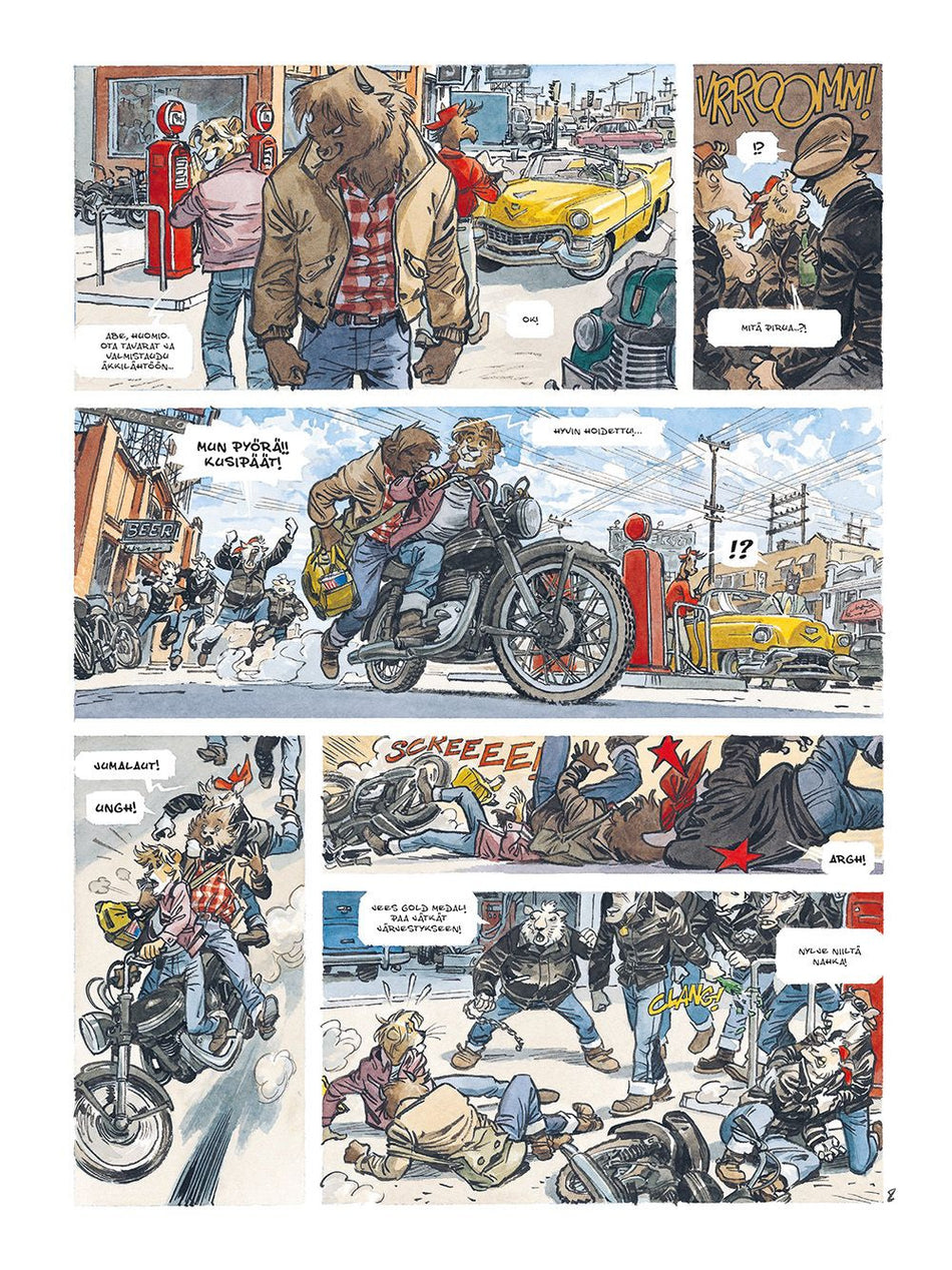 Blacksadin viides, kauan sitten loppuunmyyty seikkailu jälleen saatavana! Kissaetsivän arkeen tulee virkistävä muutos, kun hänet palkataan ajamaan hieno Cadillac halki mantereen. Mutta auto vohkitaan, ja niin Blacksad sekaantuu kahden beat-runoilijan synkeään ja sekavaan elämään. Lue lisää
