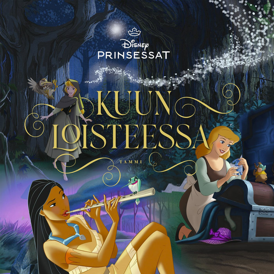 Kuun loisteessa tuuditetaan unten maille niin hiirulaisia kuin lumottuja esineitäkin, ja saat kuulla, kuinka prinsessat viettävät pyjamajuhlia. Tähkäpää tunnelmoi leiritulen äärellä, Pocahontas uhmaa myrskyä ja Aurora löytää kadonneen pupun. Satuja pääsevät sepittämään myös Belle, Merida ja Tuhkimo.