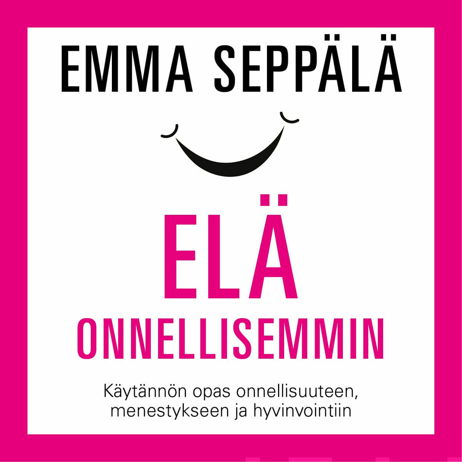 Emma Seppälä on psykologian tohtori, jonka erikoisalaa ovat onnellisuus ja positiivinen stressi. Uusimpiin kognitiivisen psykologian ja neurotieteiden tutkimustuloksiin perustuen hän näyttää lukijalleen, miten on mahdollista kehittyä ihmisenä niin henkilökohtaisessa kuin ammatillisessakin elämässä.